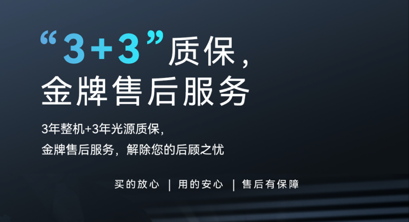 优异的品质和优质的售后服务是快盈VIII·晨星系列投影机未来发展的有力保障,也是对每一位快盈VIII·晨星用户的承诺。我们推出3年质保和“五星级”产品服务,为所有客户提供3年整机质保外加3年光源质保服务,真正做到让客户买的放心,用的安心。